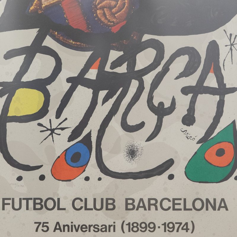 Joan Miró, 75 aniversario F. C. Barcelona. Cartel litografico, unidad 346/1500.